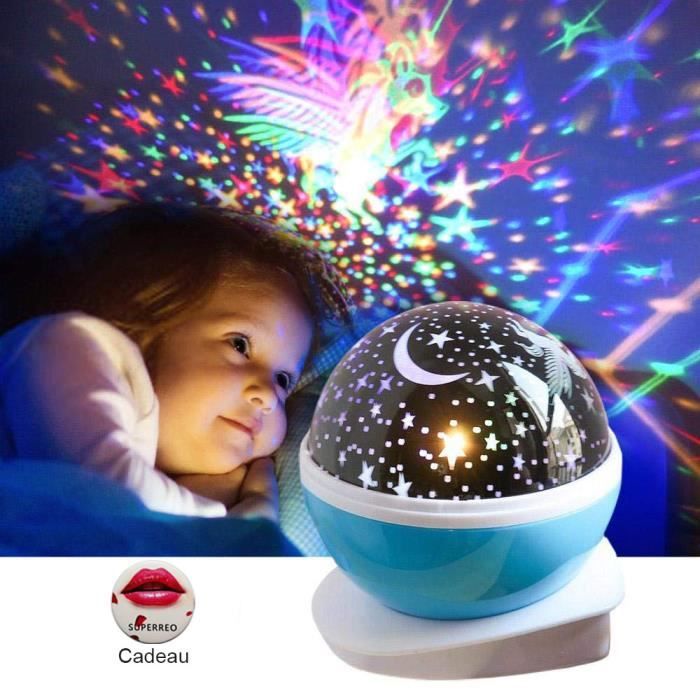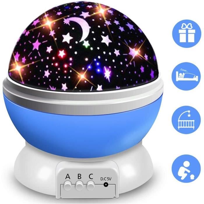 Veilleuse Enfant Etoile Projection Colorée Rotation Lampe Projecteur Lumiere Plafond - Bleu