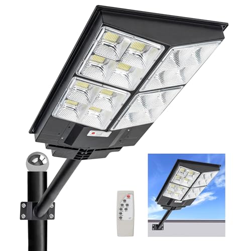 WERISE 900W Solaire Exterieur Lampadaire avec Detecteur de Mouvement, IP65 Étanche Projecteur Solaire Exterieur Puissant avec Telecommande, 6500K 1440 LED Lampe Solaire pour Jardin Rue Garage Parking