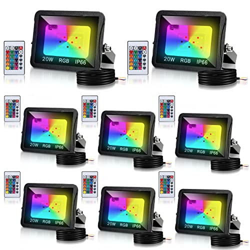 Tubiaz Projecteur LED RGB Exterieur Avec Télécommande, 8pack 20W Projecteur LED Couleur 16 Couleurs 4 Modes, Fonction Mémoire, IP66 Étanche Spot LED Extérieur pour Jardin (pas de prise)