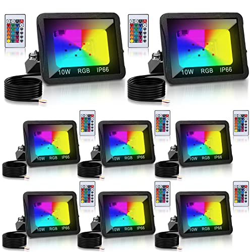 Tubiaz Projecteur LED RGB Exterieur Avec Télécommande, 8pack 10W Projecteur LED Couleur 16 Couleurs 4 Modes, Fonction Mémoire, IP66 Étanche Spot LED Extérieur pour Jardin (pas de prise)