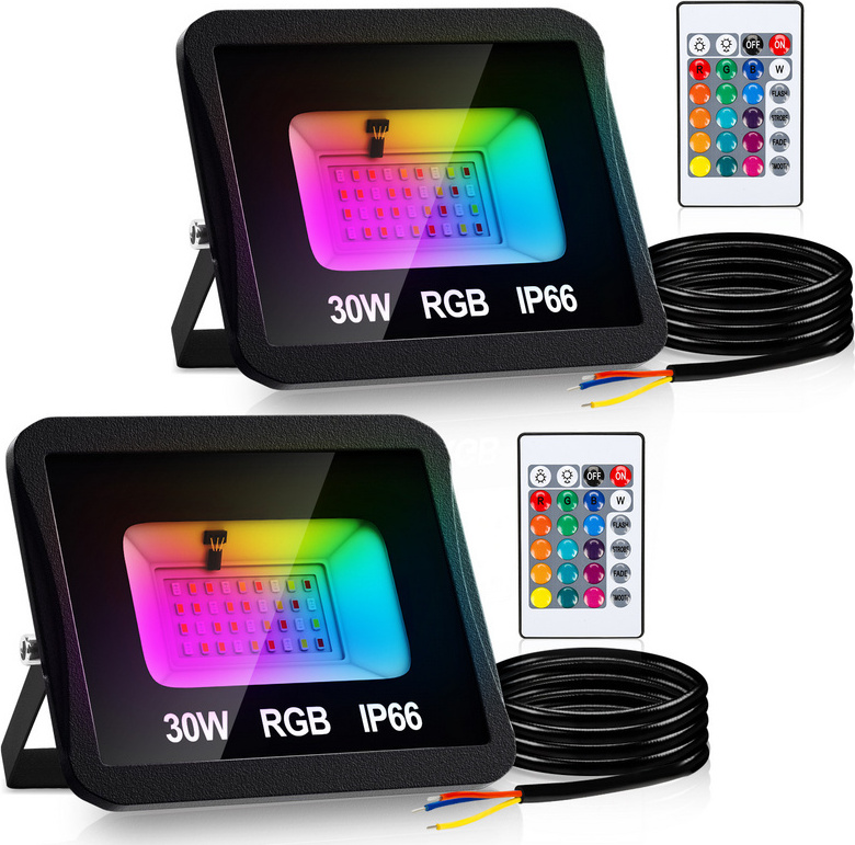 TolleTour Projecteur RGB LED 30W RGB Projecteur RGB LED extérieur avec télécommande IP66 étanche pour jardin 2 pièces