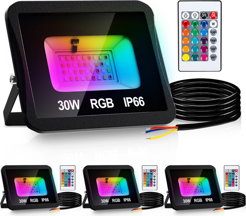 Jopassy Projecteur RGB LED 30W RGB Projecteur RGB LED extérieur avec télécommande IP66 étanche pour jardin 4 pièces