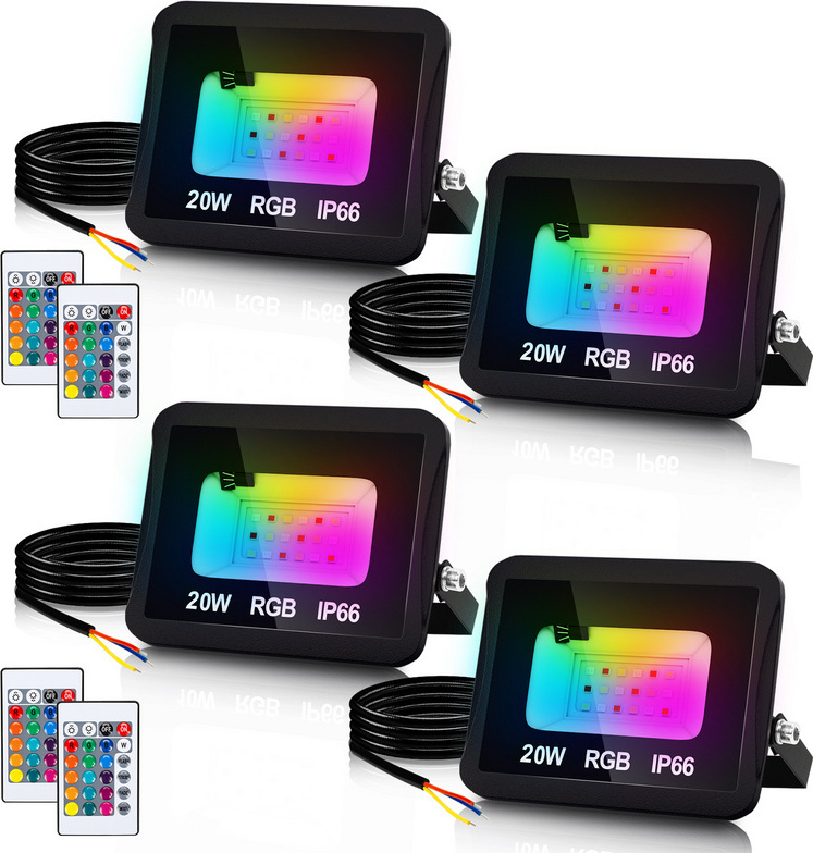 TolleTour Projecteur RGB LED 20W RGB Projecteur RGB LED extérieur avec télécommande IP66 étanche pour jardin 4 pièces