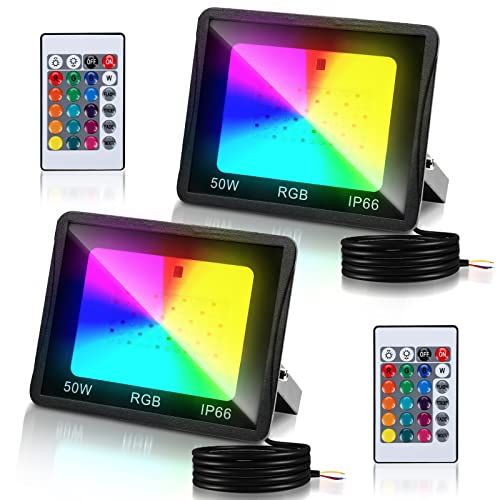 Jopassy Projecteur RGB LED 50W RGB Projecteur RGB LED extérieur avec télécommande IP66 étanche pour jardin 2 pièces