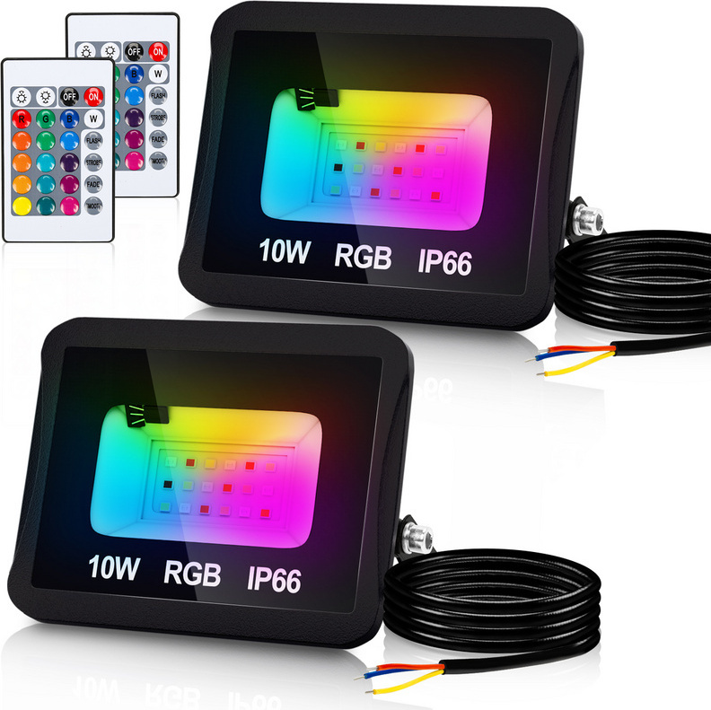 Jopassy Projecteur RGB LED 10W RGB Projecteur RGB LED extérieur avec télécommande IP66 étanche pour jardin 2 pièces