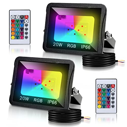 TolleTour Projecteur RGB LED 20W RGB Projecteur RGB LED extérieur avec télécommande IP66 étanche pour jardin 2 pièces