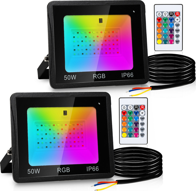 TolleTour Projecteur RGB LED 50W RGB Projecteur RGB LED extérieur avec télécommande IP66 étanche pour le jardin 2 pièces