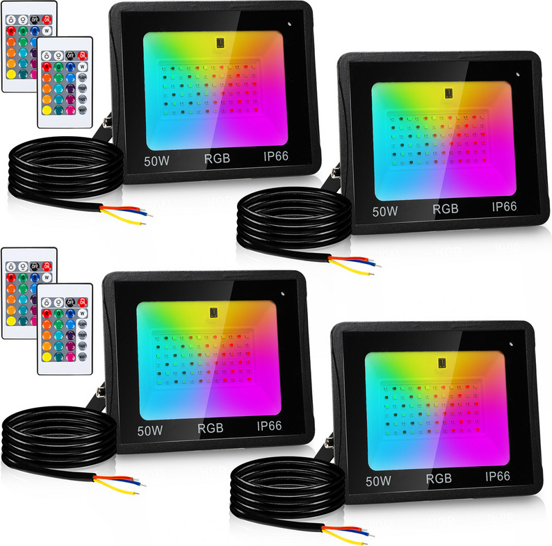 TolleTour Projecteur RGB LED 50W RGB Projecteur RGB LED extérieur avec télécommande IP66 étanche pour jardin 4 pièces