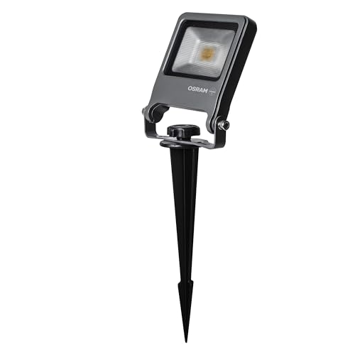 Osram ENDURA Projecteur de Jardin à Piquet, 10W, 800lm, 3000K Blanc Chaud, IP65, Câble de 2m avec Prise, Aluminium Gris Foncé