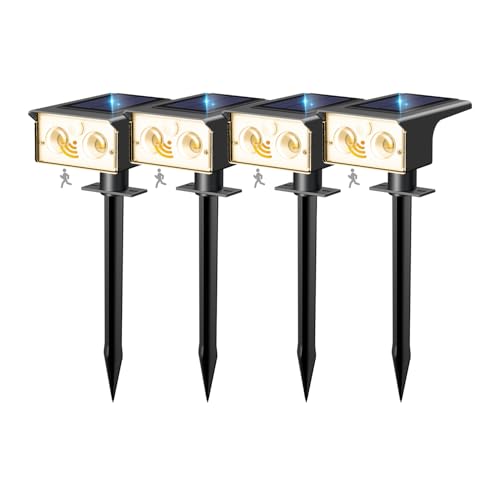 Linkind Lampe Solaire Extérieur avec Détecteur de Mouvement 1000Lm, 3000K Blanc Chaud, 3 Modes (y Compris Éclairage Continu), Spot Solaire d'Allée, StarRay IP67 Solaire LED Projecteur de Jardin, 4PCS