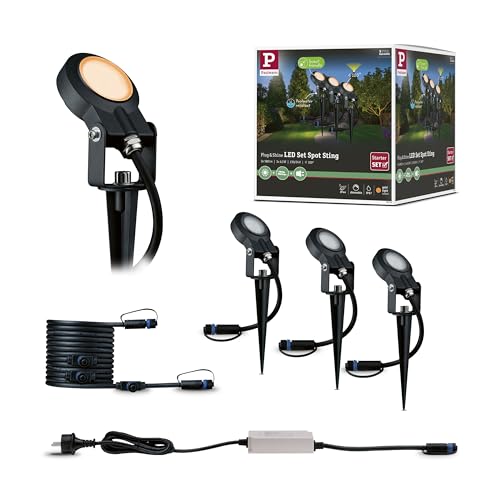 Paulmann 94729 luminaire d'extérieur LED Plug & Shine Projecteur de jardin Sting kit respect insectes IP67 2200K 3x6,3W 75VA Anthracite rond gradable