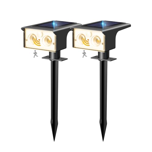 btfarm Lot de 2 Lampe Solaire Exterieur Detecteur de Mouvement, 6500K Lumiere Extérieur Puissant, 3 Modes Spot Solaire IP65 Étanche Eclairage, Projecteur Solaire pour Jardin Chemins Blanc Chaud