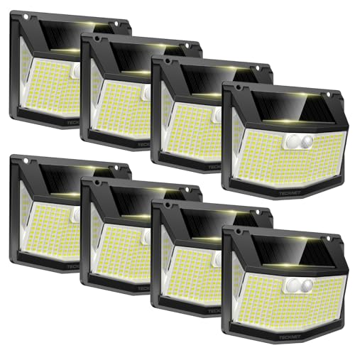 TECKNET Lampe Solaire Extérieur, 248 LEDs, Projecteur Solaire avec Éclairage à 300°, Lampe Murale Étanche IP66, 3 Modes, avec Détecteur de Mouvement, pour Jardin Allée Garage-8pcs