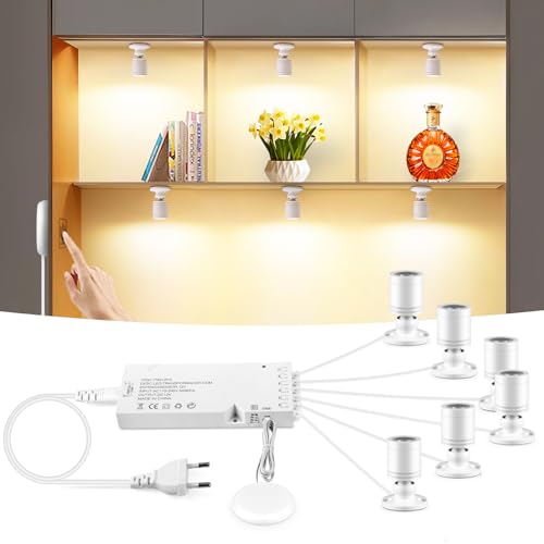 12V LED lampe de plafond blanche COB projecteur,6 Pcs Wärmeweiß lumière lampe de plafond avec touche et main balayage Dimmer commutateur Kit pour armoire,étagères,étagères, vitrines éclairage