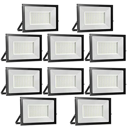 loyal Lot de 10 spots LED d'extérieur 100 W, haute luminosité 10 000 lm Projecteur LED extérieur éclairage 3000 K blanc chaud, lumière de sécurité étanche IP65, lampe LED murale plafond pour jardin