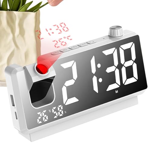Walopola Réveil projecteur, Horloge de Projection,Horloge de projecteur pour Plafond de Chambre - Alarme de projecteur de Station météo à Affichage LED Clair pour Chambre à Coucher