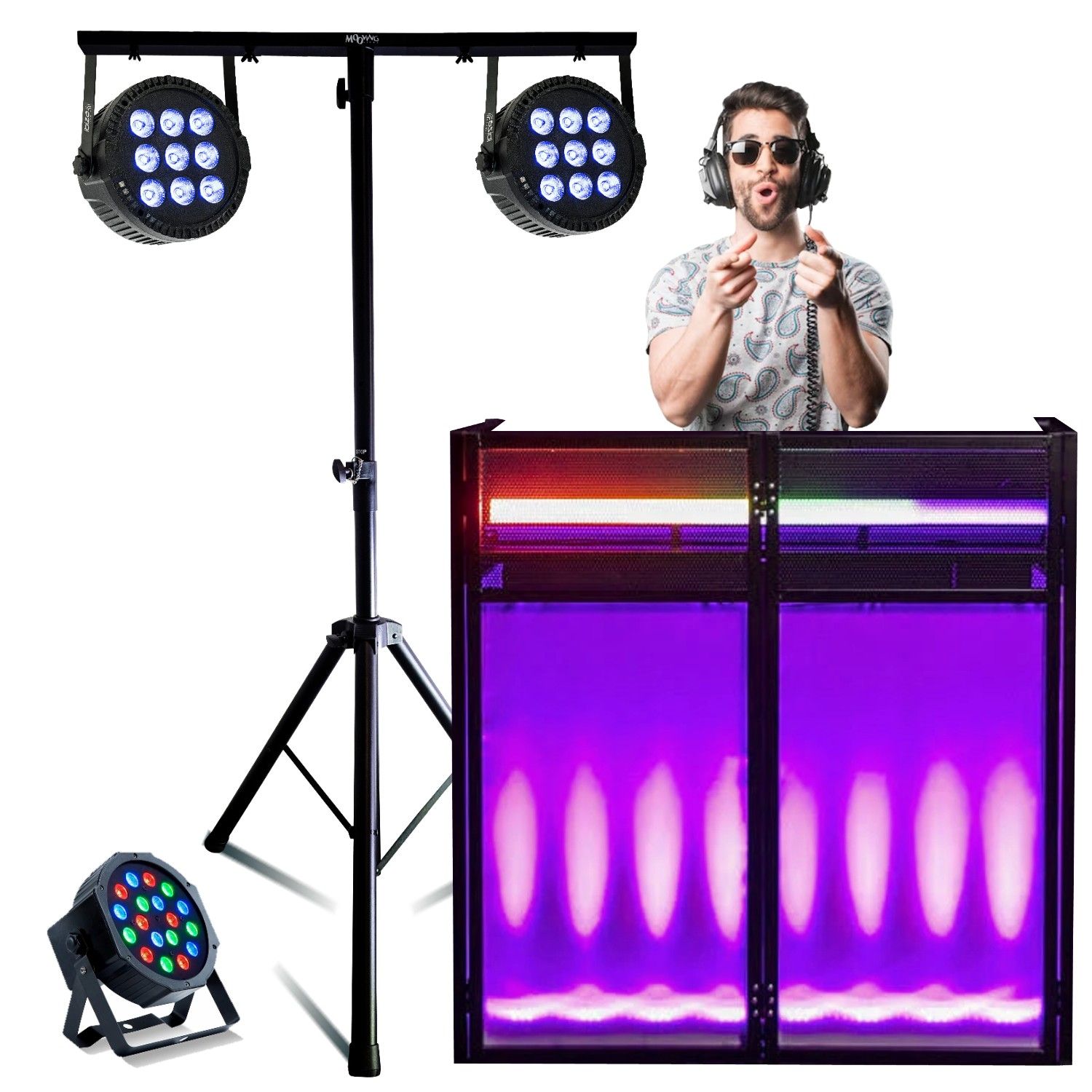 Pack Lumière - 2 portiques DJ Projecteurs PAR Astro - Facade - Machine Fumée Lumière LED Astro - Projecteur PAR - Soirée Mariage