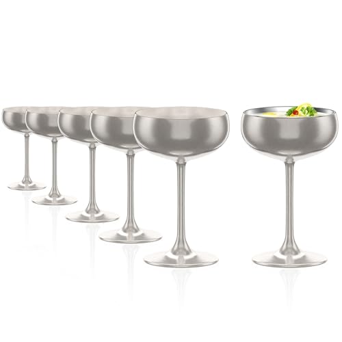 Rink Drink 6 Verres à Champagne Coupe – 235 ml, style vintage, soucoupes à cocktail pour champagne, prosecco, martini – Verrerie classique Art déco pour fêtes, mariages et bar à la maison