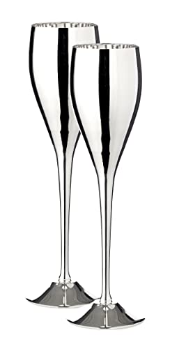 EDZARD Lot de 2 flûtes à champagne Dodo (200 ml) argentée - calices pour vin, champagne, prosecco en laiton en haute brillance pour célébrer, Silver