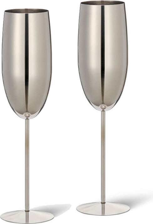 2 Flûtes à champagne en acier inoxydable set cadeau (250ml), flûtes à champagne & prosecco - décoration de table pour Halloween, set cadeau pour Noël, argent, 2