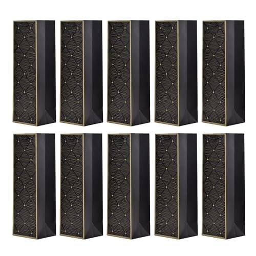 10 sacs à bouteilles sacs à cadeaux pour vin, prosecco et champagne 36 x 12 x 10 cm - Noir avec cadre doré