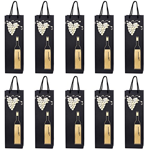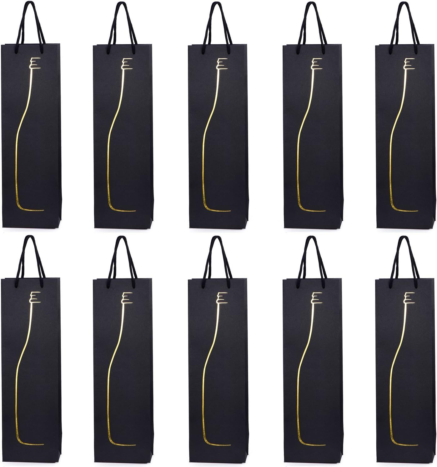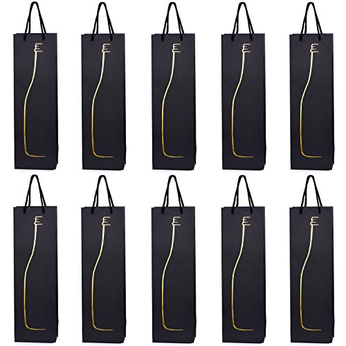 10 sacs à bouteilles sacs à cadeaux pour vin, prosecco et champagne 36 x 12 x 10 cm - Noir Or