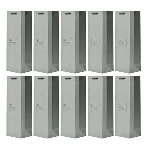 10 sacs à bouteilles sacs à cadeaux pour vin, prosecco et champagne 36 x 12 x 10 cm - Be Happy Gris clair
