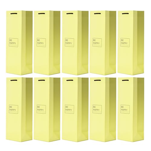 10 sacs à bouteilles sacs à cadeaux pour vin, prosecco et champagne 36 x 12 x 10 cm - Be Happy Pastel Jaune citron