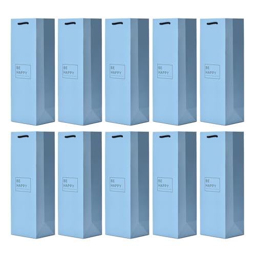 10 sacs à bouteilles sacs à cadeaux pour vin, prosecco et champagne 36 x 12 x 10 cm - Be Happy Bleu clair
