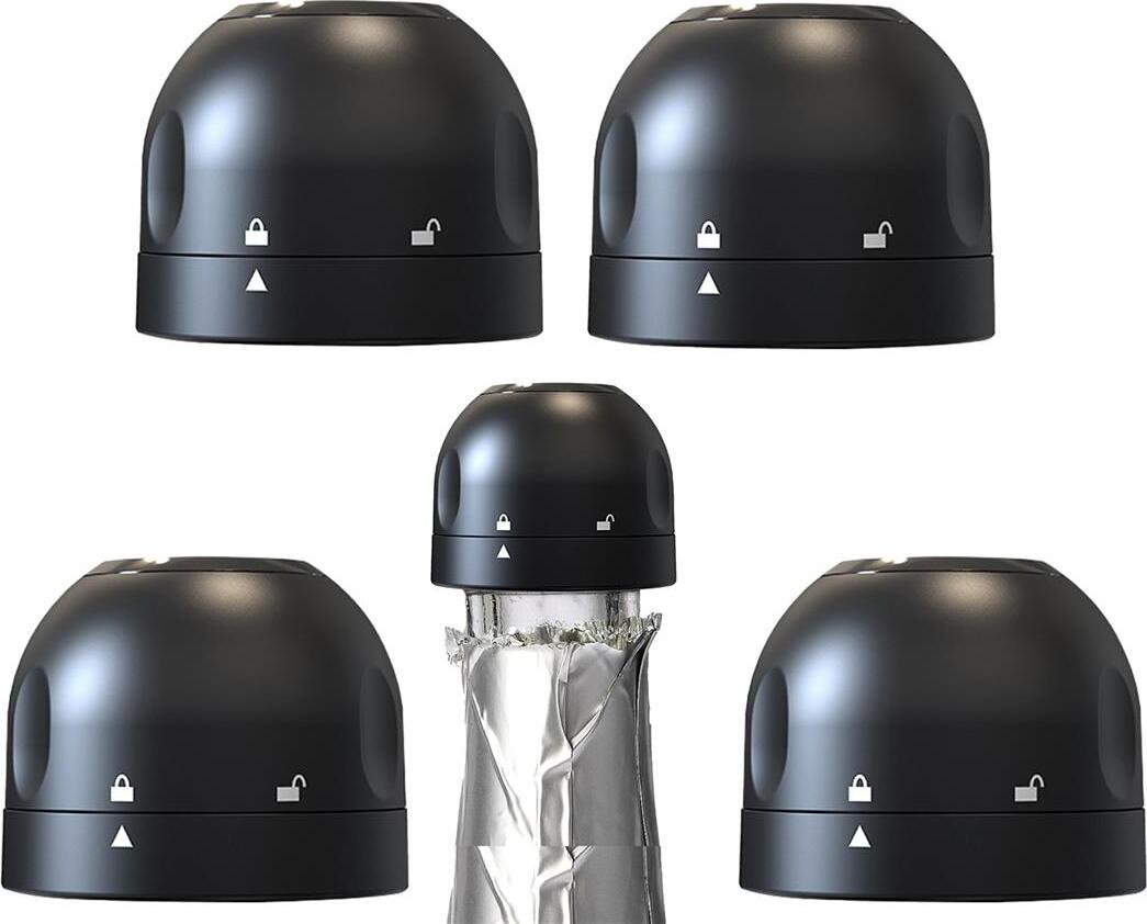 pack de 5 bouchons de champagne | Bouchon de bouteille de vin sous vide pour champagne, prosecco & diverses bouteilles en verre Bouchon de bouteille de boisson ÉTANCHE À L'AIR - Scellement de bouteilles Bouchon de bouteille noir