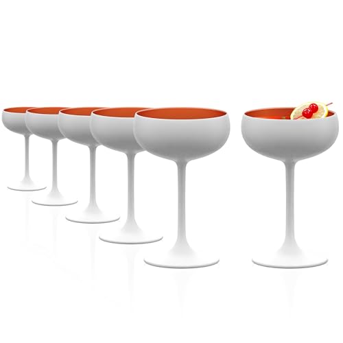 Stölzle Lausitz Coupes à Champagne Blanc/Argent Set de 6 – 230 ml Verres en Cristal sans Plomb Élégants et Résistants – Idéals pour Champagne & Prosecco – Compatibles Lave-vaisselle