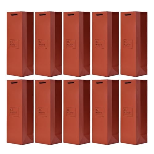 10 sacs à bouteilles sacs à cadeaux pour vin, prosecco et champagne 36 x 12 x 10 cm - Be Happy rouge