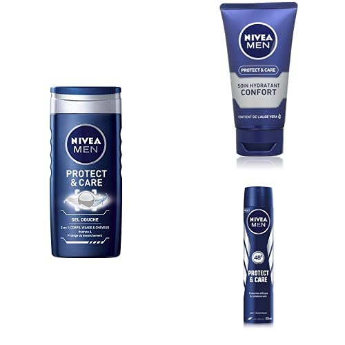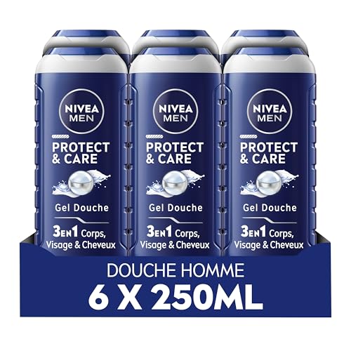 NIVEA MEN Gel douche Protect & Care (lot 6x250 ml) — Soin lavant enrichi en Aloe Vera naturel — Gel douche homme 3 EN 1 — Soin nettoyant corps visage et cheveux à la formule hydratante