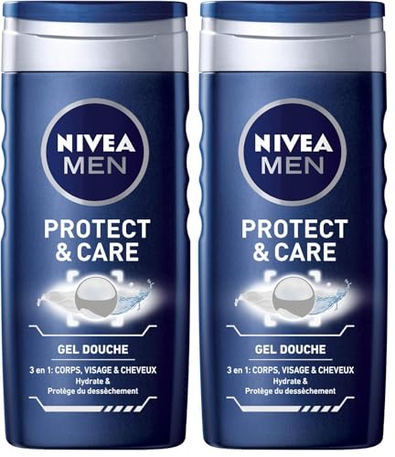 NIVEA MEN Gel douche Protect & Care (1x 250 ml), Gel douche homme 3-en-1hydratant, Soin lavant à la formule hydratante enrichie en Aloe Vera (Lot de 2)