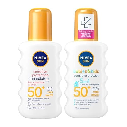 NIVEA SUN Sensitive Protection solaire pour toute la famille, Spray solaire Sensitive protection immédiate FPS 50+, Crème solaire Babies & Kids sensitive protect FPS50