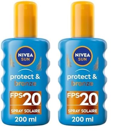 NIVEA SUN - Spray Solaire Activateur De Bronzage Protect & Bronze FPS 20 - Protection & Teint Hâlé - Extrait Naturel De Pro-Mélanine - Formule Légère & Non Grasse - Peaux Normales - 200 ml (Lot de 2)