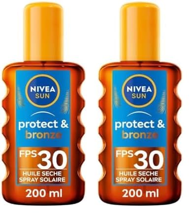 NIVEA SUN Spray solaire activateur de bronzage Protect & Bronze FPS 30 (1 x 200 ml), huile solaire avec protection UVA/UVB pour un hâle naturellement bronzé, crème solaire bronzage (Lot de 2)
