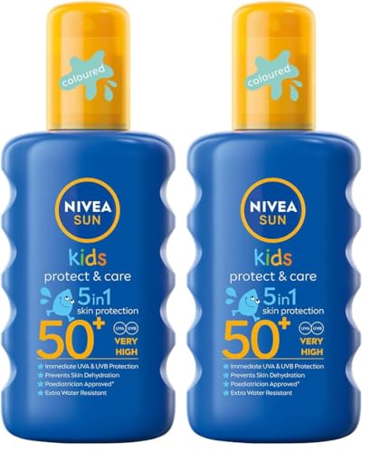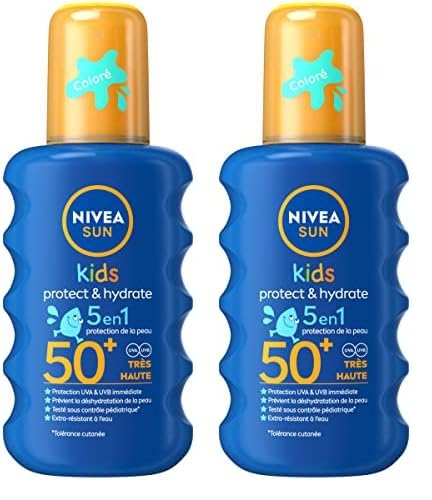 NIVEA SUN Kids Spray Protect & Play coloré FPS 50+ (1x200 ml), protection solaire hydratante adaptée à la peau des enfants, écran solaire extra résistant à l’eau (Lot de 2)
