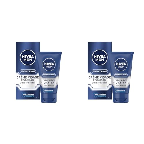 NIVEA MEN Protect & Care Soin Confort Hydratant (1 x 75 ml), Soin visage enrichi en Vitamine B5 et Aloe Vera, Crème Hydratante non grasse pour hommes (Lot de 2)