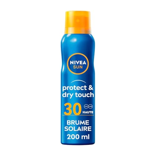 NIVEA SUN - Brume Protectrice Protect & Dry Touch FPS 30 - Protection Solaire - Glycérine - 100% Transparent - Formule Non Grasse & Rafraîchissante - Ultra-Résistant À L'Eau - Peaux Normales - 200 ml