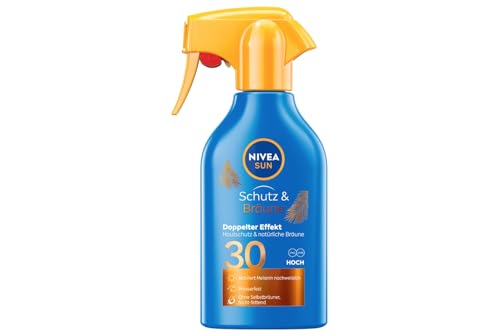 NIVEA SUN Maxi Crème Solaire Spray Protect & Bronze FP 30 270 ml, Crème Solaire 30 pour un bronzage Doré, Intense et Uniforme, Protection Solaire 30 en Flacon en Spray Pratique