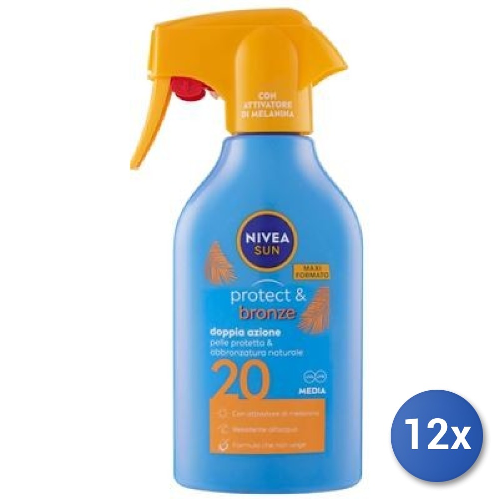 12x Lot Nivea Solaire 270 Ml. Fp20 Déclencheur Protect & Bronze 98334
