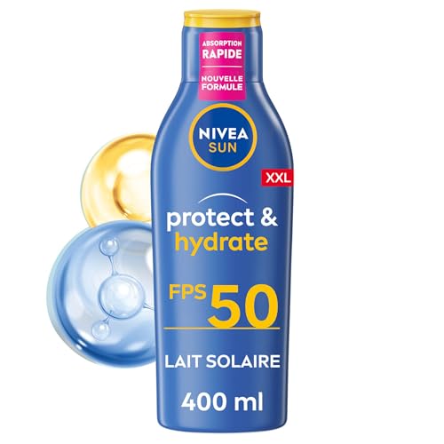 NIVEA SUN Lait Solaire Protect & Hydrate SPF 50+ 400 ml - Crème Solaire résistante à l'eau - Protège et Hydrate - Format XXL - Haute Protection Visage et Corps
