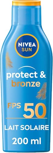 NIVEA SUN Lait solaire activateur de bronzage Protect & Bronze FPS 50 (1 x 200ml), crème solaire avec protection UVA/UVB pour un hâle naturellement bronzé