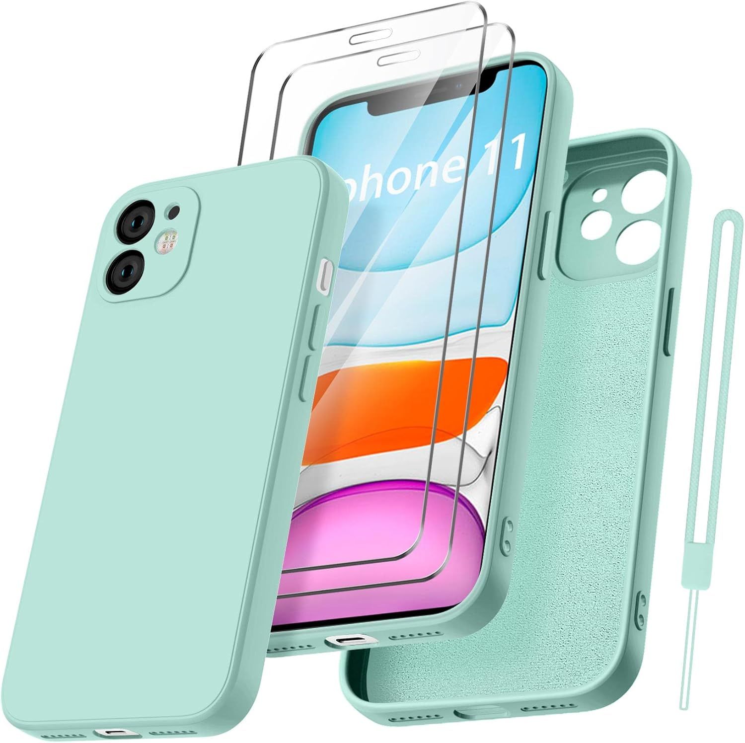 Coque Protection Caméra Pour Iphone 11 Avec 2 Pièces Verre Trempé, Housse De Protection Silicone Antichoc Doublure Microfibre Douce Ultra Fine Pour Iphone 11 6.1"" - Vert Menthe
