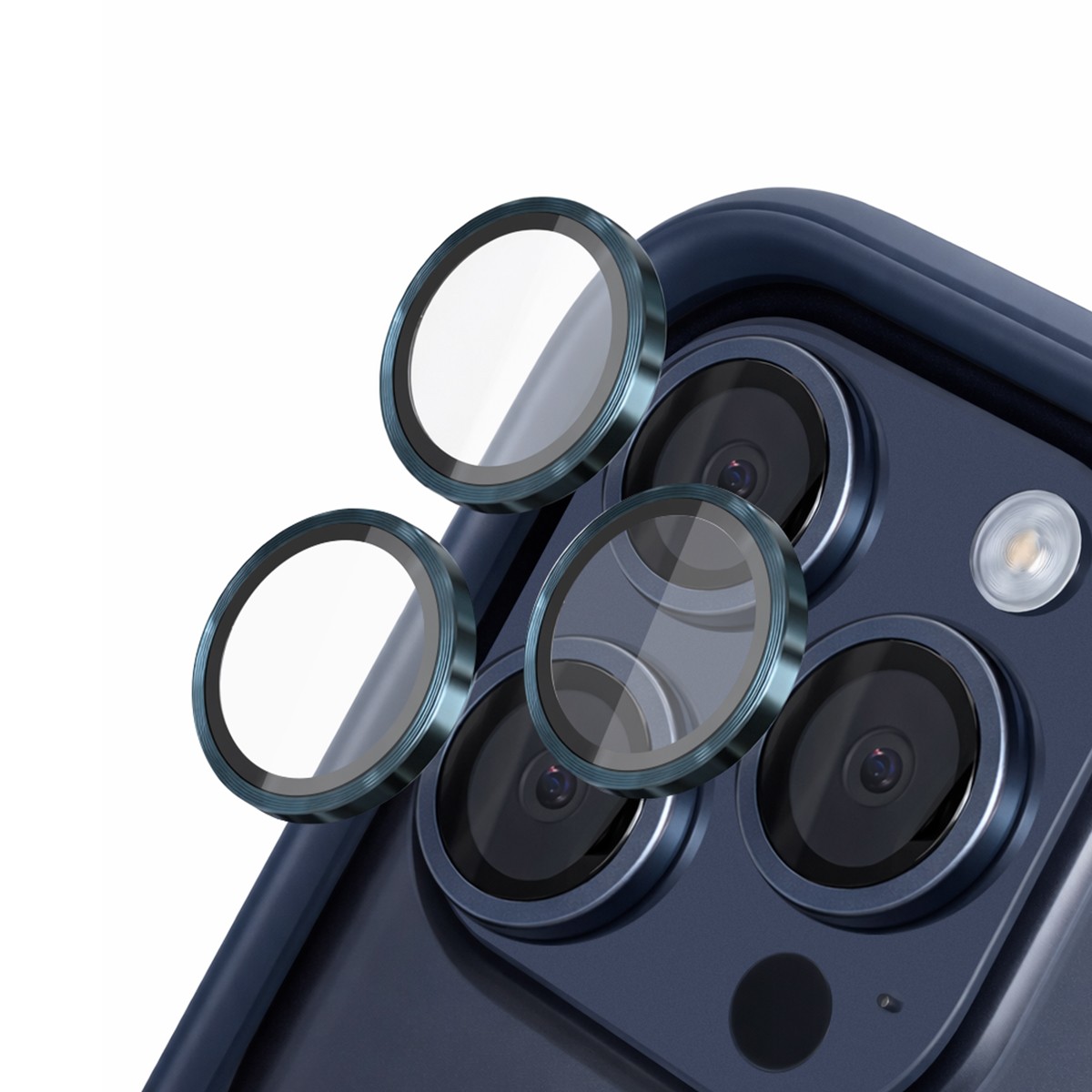 UniqueMe pour iPhone 15 Pro/15 Pro Max Protection Camera Objectif - Ultra HD Caméra Protection, 9H Dureté, Ultra Résistant Film Verre Trempé, Facile à Installer - 3 Pièces - Bleu