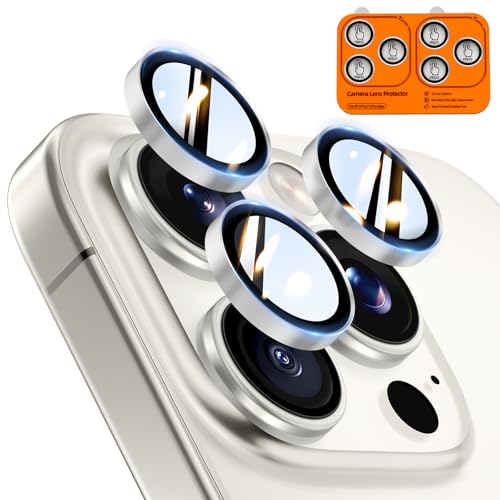TOCOL Protection Camera pour iPhone 15 Pro Max, iPhone 15 Pro, Résistant aux Rayures, Antichoc, Anti-Buée, Installation Facile, Verre Trempé HD Protections d'Objectif, Argenté