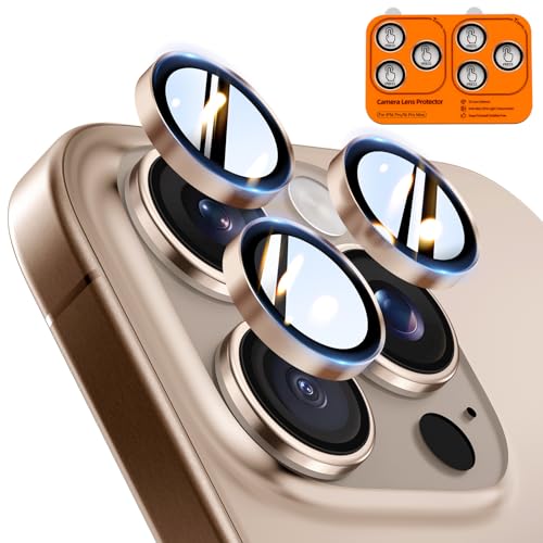 Jurqqer Protection Camera Objectif pour iPhone 16 Pro/iPhone 16 Pro Max - Ultra HD Caméra Protection, 9H Dureté Verre Anti-Rayures, Compatible Coque, HD Clair, Facile à Installer Titane Coloré