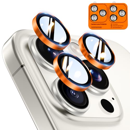 TOCOL Protection Camera pour iPhone 15 Pro Max, iPhone 15 Pro, Résistant aux Rayures, Antichoc, Anti-Buée, Installation Facile, Verre Trempé HD Protections d'Objectif, Orange