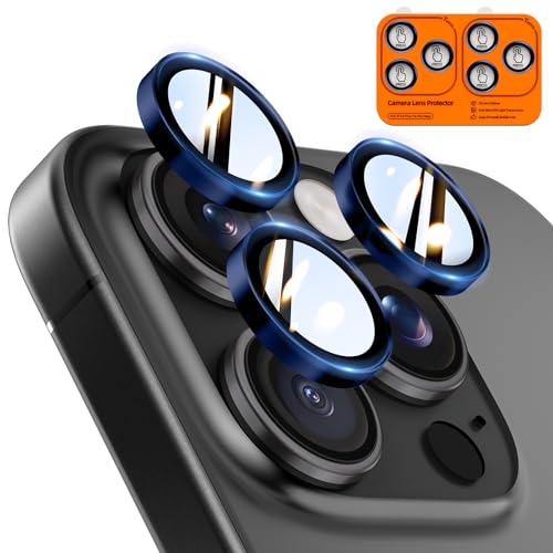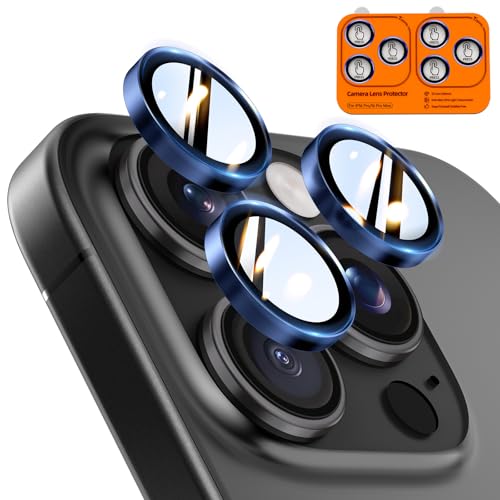 TOCOL Protection Camera pour iPhone 16 Pro Max, iPhone 16 Pro, Résistant aux Rayures, Antichoc, Anti-Buée, Installation Facile, Verre Trempé HD Protections d'Objectif, Bleu